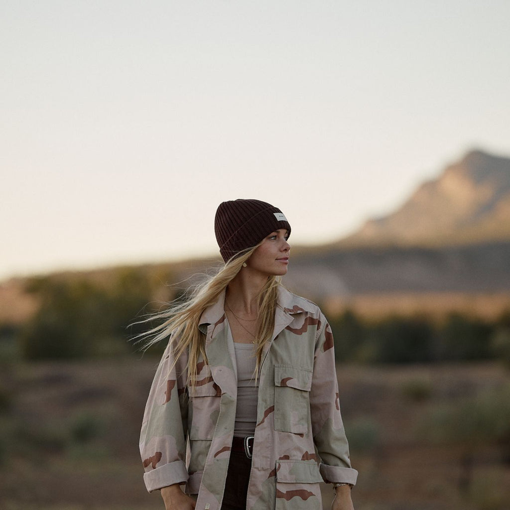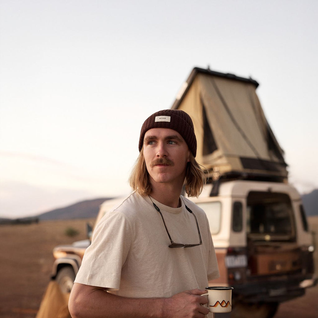 Stay warm this season with Levi Dark Brown, a unique beanie made of Renewable Australian wool and warm fleece liner for extra warmth. Its brown textured wool base is complimented by a stylish cotton logo banner, perfect for a vintage 70's look. Levi comes in one size and is designed to stretch from 53cm - 59cm.